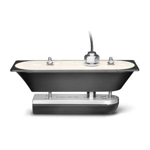 The CHIRP DownVü element has a power rating of 500 W and operating frequencies of 260/455 kHz. The traditional sonar has a power rating of 600 W and operating frequencies of 50/200 kHz. It includes a built-in fast-response temperature sensor. For hull deadrises less than 25 degrees.